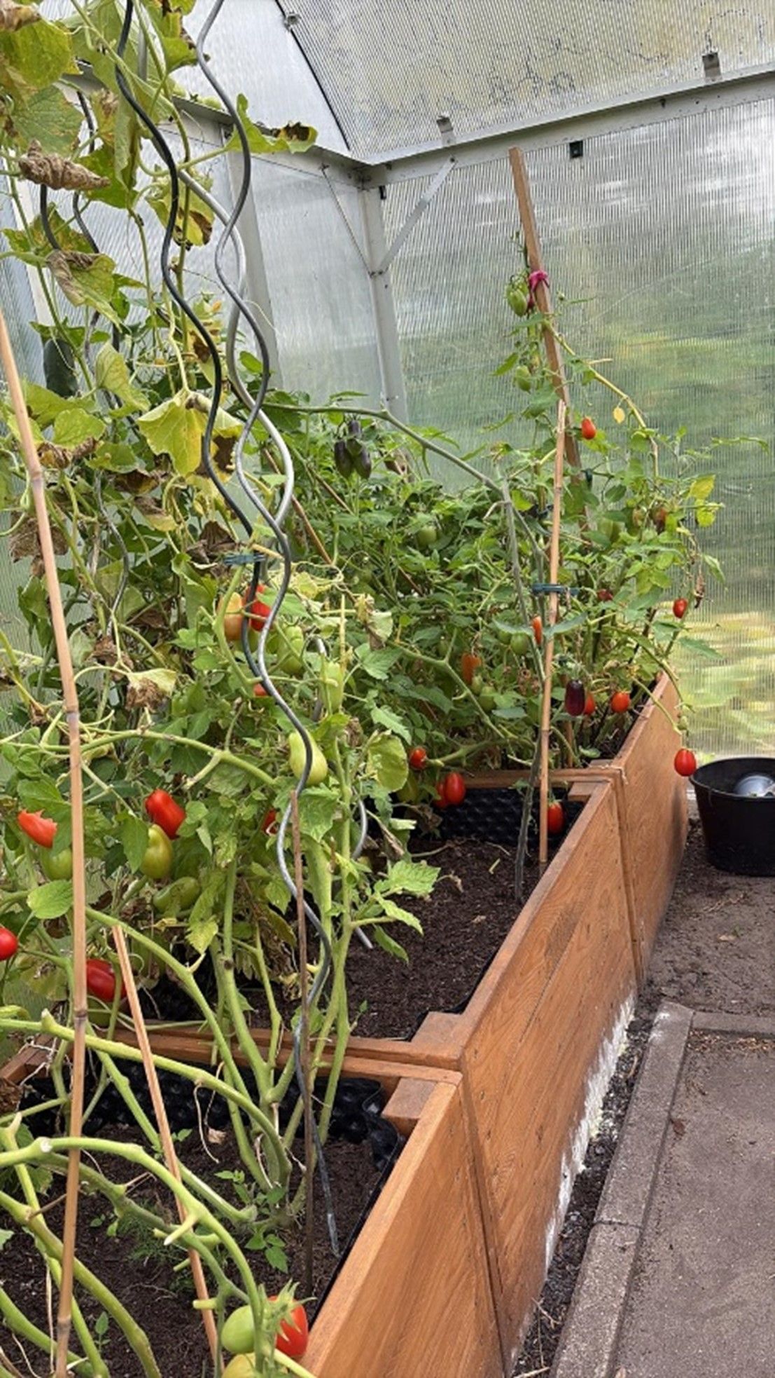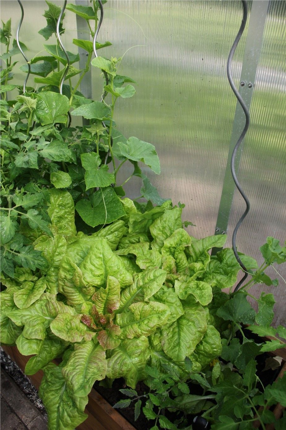 - Im Gewächshaus: Tomaten, Gurken, frische Salatköpfe und sogar mehrere süße Melonen